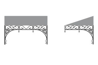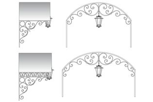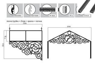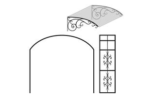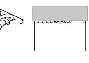 Кованые конструкции органично вписываются в архитектурный стиль, придавая зданию законченный вид. В отличие от навесов козырьки монтируются без установки опор, при помощи кронштейнов, они более компактны по размерам. Изделия прочны, обладают устойчивостью к механическим повреждениям и отличаются привлекательным видом. Для данных изделий существует несколько конструктивных решений. Это: